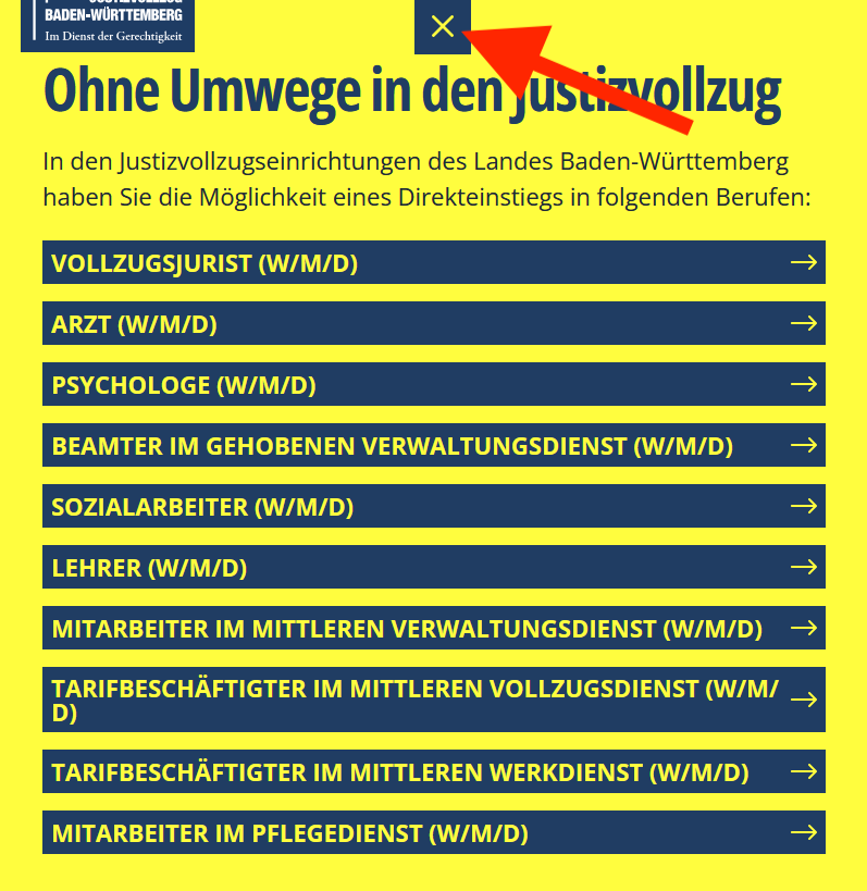 Dann klicken Sie auf das Logo vom Justiz-Vollzug Baden-Württemberg.