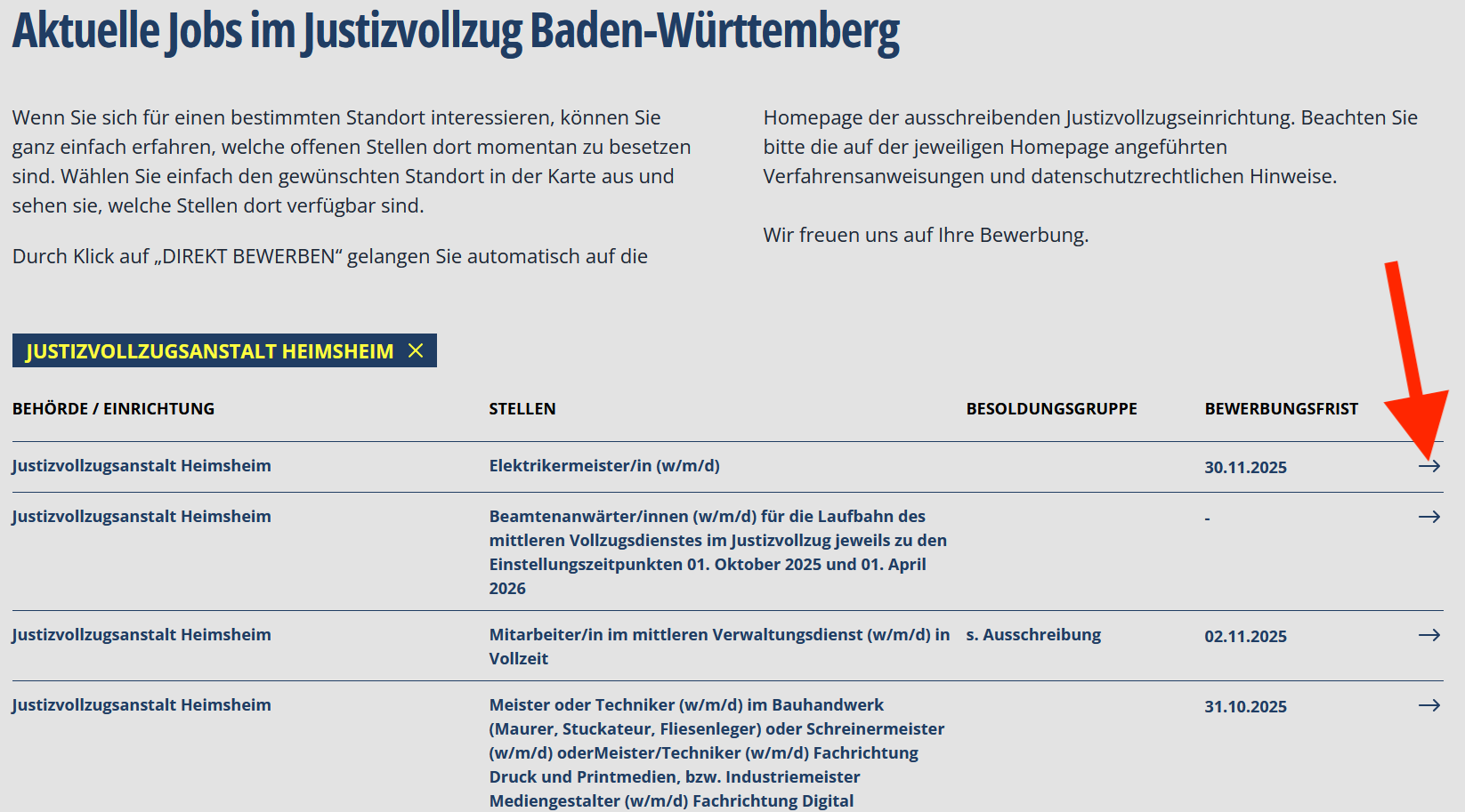 Bei jedem Stellen-Angebot finden sie rechts einen Pfeil.