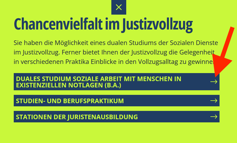Links im Bild können Sie diesen Satz lesen: Studium und Praktikum im Justiz-Vollzug.
