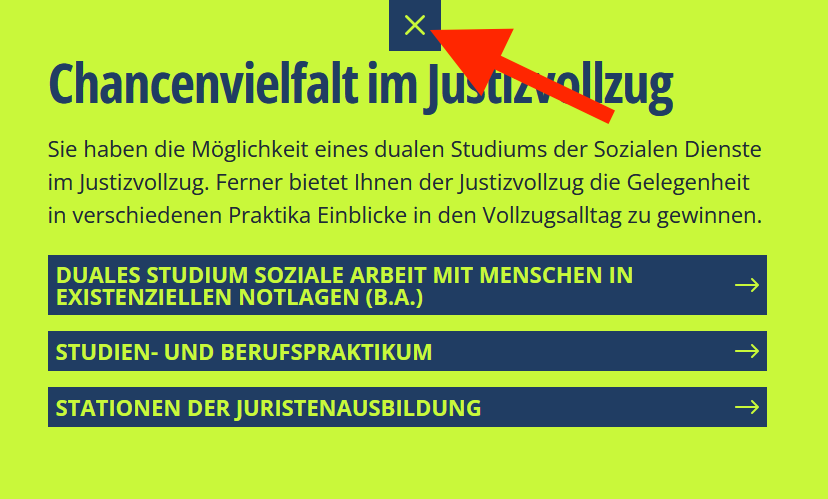 Klicken Sie auf den Bereich: Justiz-Vollzug.