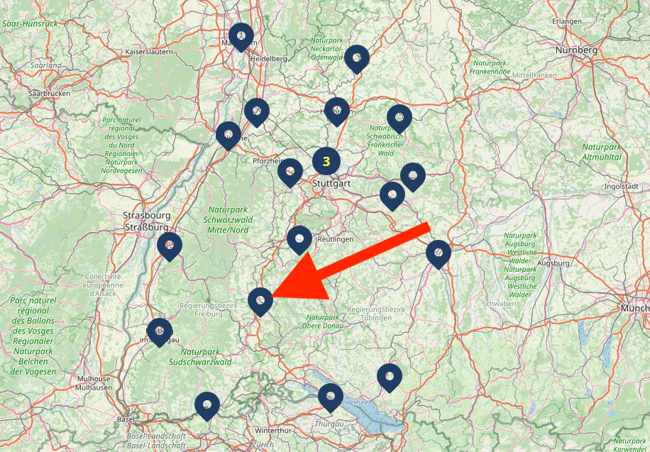 Unterhalb der Land-Karte ist eine Liste mit allen freien Stellen in Baden-Württemberg.